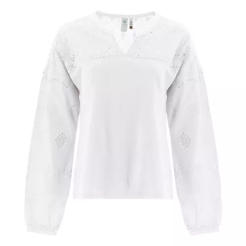 The Seychelle Top is a stunning summery long sleeve with ethical origins. The yoke and sleeves demand attention in this top, featuring diamond-shaped embroidery. It is a durable detail that you don’t have to tiptoe around while enjoying your summer days. Better yet, this unique top was made from 100% organic cotton and produced at a Fair Trade Certified factory, meaning that it is doing its part to create a better today and secure a brighter future. With flattering details, such as side slits, a Y-neck, and drop shoulders, the Seychelle will do its best to enhance your natural beauty. If you like this style, check out the Seychelle Tank Top and Seychelle Dress.