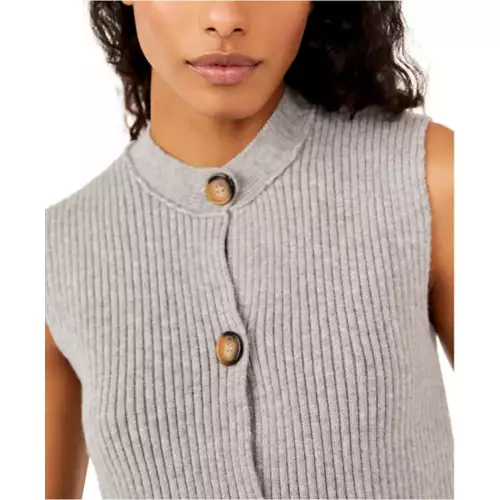 Add the coolest sweater vest to your collection with this boxy, cropped version featured in a ribbed knit fabrication and button-front silhouette for added versatility.
